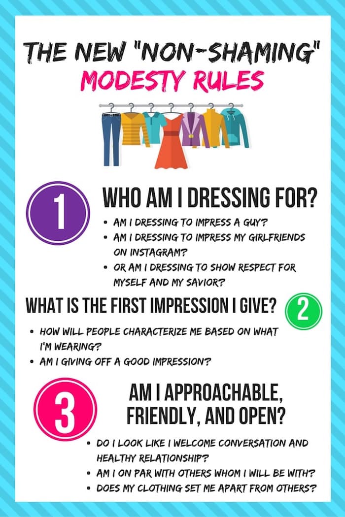 I started reading this article with the intention of being offended. When I finally got to the bottom of the article and saw your Pin “New non-shaming Modesty Rules” my first thought was finally. Someone. Gets. It. Yes. Thank you.