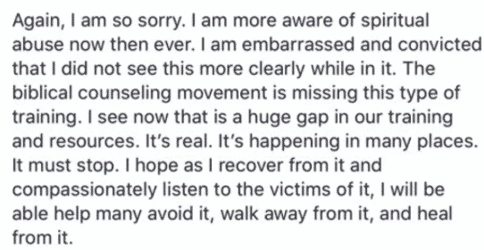 Just last night, Grant Higbee, who was on staff at Harvest Bible Chapel as a counsellor and who was involved in the whole mess that led to James MacDonald being fired issued a statement for ignoring spiritual abuse for too long. Part of his statement is as follows: