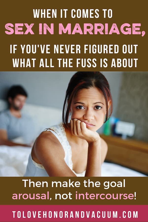 Perhaps the problem in your marriage is not that sex can’t be great–it’s that you’ve skipped too many steps along the way. So as a couple, maybe it’s time to work through those steps together. But here’s the thing: if you want to learn how to get aroused, the goal can’t be to have sex–the goal is only to get aroused. That means there’s no pressure to have sex. And if sex doesn’t happen, you haven’t failed–you’ve done work to go through those steps to train your body to respond to arousal. It’s not likely going to go from 0 to 100 in one day.