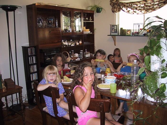 Katie’s 4th birthday party (she’s the one in the purple). My living room was always chaotic!