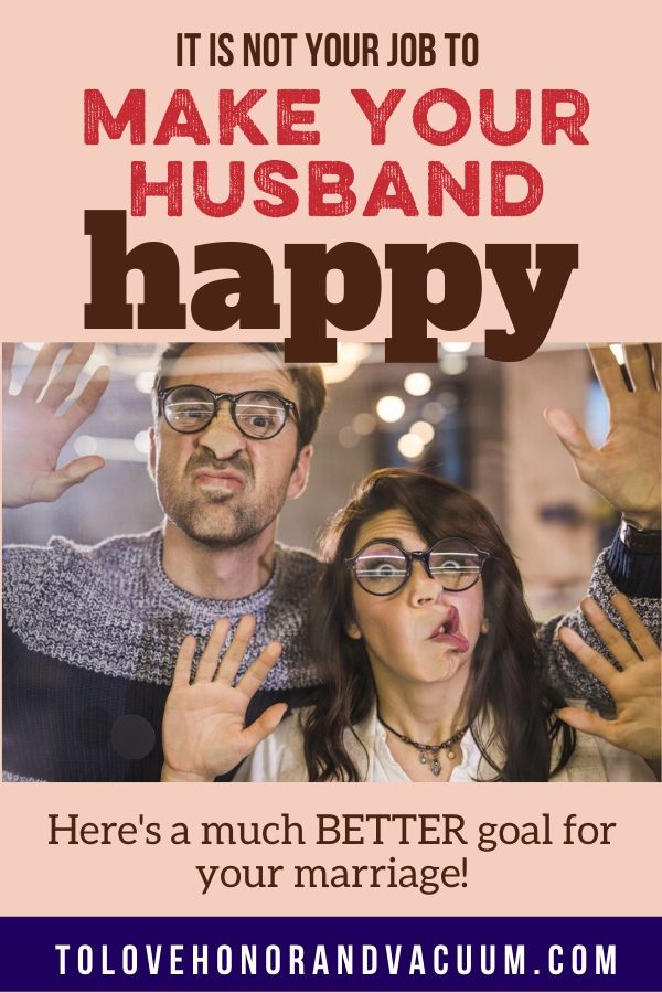 A happy marriage is not built on one spouse trying to make the other happy; a happy marriage is built on two spouses trying to love each other and caring for each other’s needs. Having a happy husband (or a happy wife) is not the measuring stick for your success in life. Pleasing God is the measuring stick for your success in life.