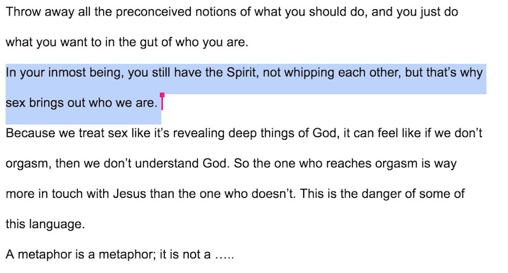 “It’s as if Christians can’t see marriage as part of the Christian life and there’s a reason for it: they see it as the meaning of life and as such, they see as transcending the rest. It’s utter foolishness….When we finally realize that marriage is just a part of life instead of the meaning of life, we have a far more holistic, positive view of life.”