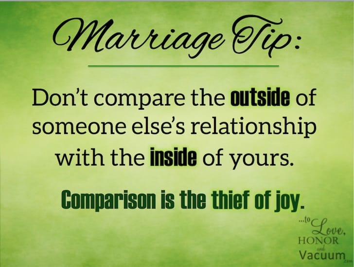 Comparing your spouse to other people’s spouses is insane. It’s one thing to say “X is hurtful and dysfunctional,” or to look to happy spouses as a guide for your own marriage, but a straight-up comparison is counterproductive.