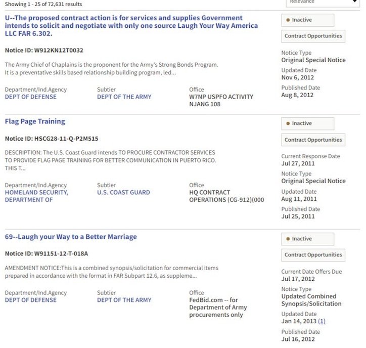 Many were awarded with no competitive bidding–they just hired Laugh Your Way to a Better Marriage.